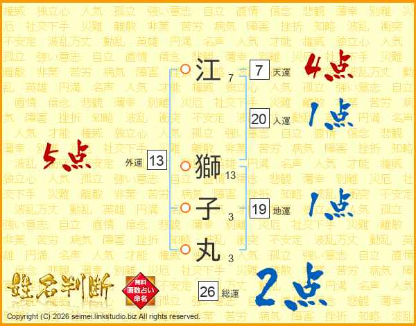 江獅子丸さんの総運は26画の2点!