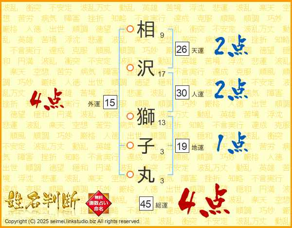 相沢獅子丸さんの総運は45画の4点!