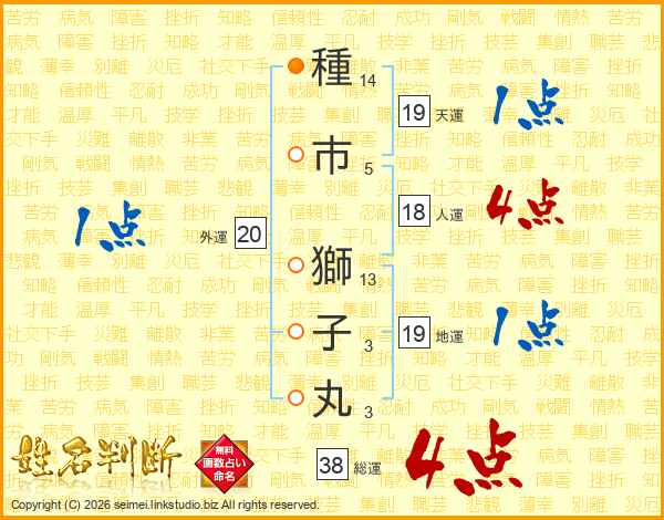 種市獅子丸さんの総運は38画の4点!