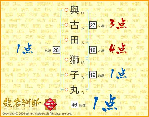 與古田獅子丸さんの総運は46画の1点!