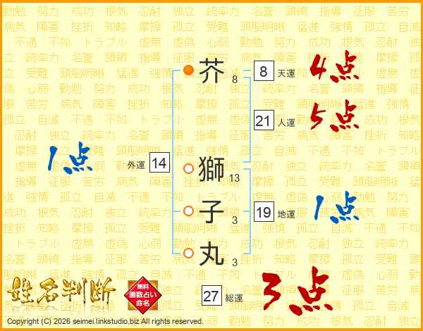 芥獅子丸さんの人運は21画の5点!