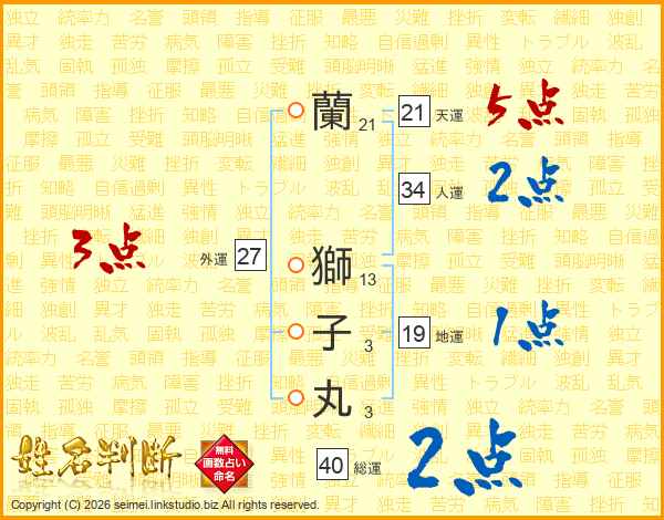 蘭獅子丸さんの天運は21画の5点!