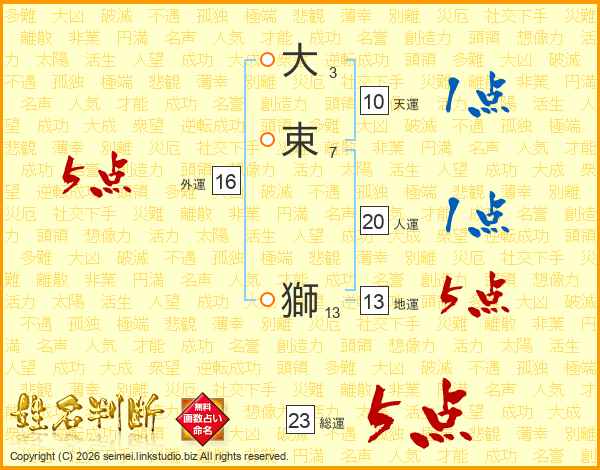 大束獅さんの地運は13画の5点!