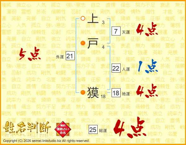 上戸獏さんの総運は25画の4点!