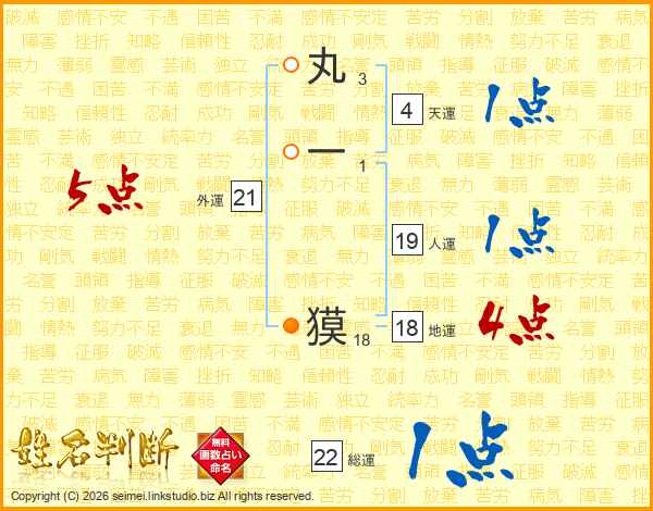 丸一獏さんの総運は22画の1点!