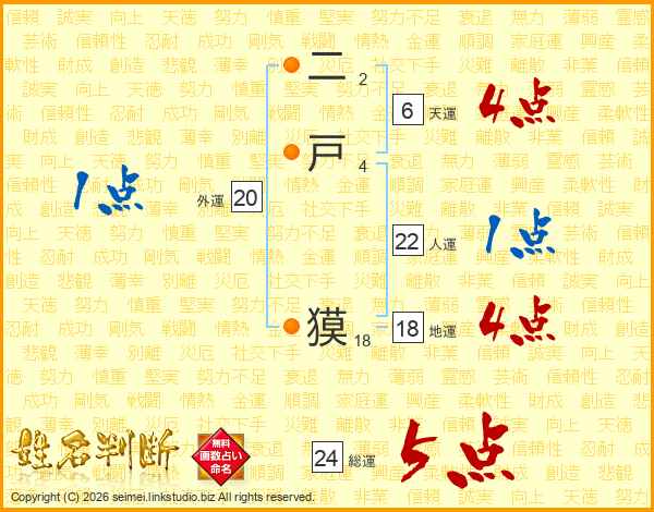 二戸獏さんの人運は22画の1点!