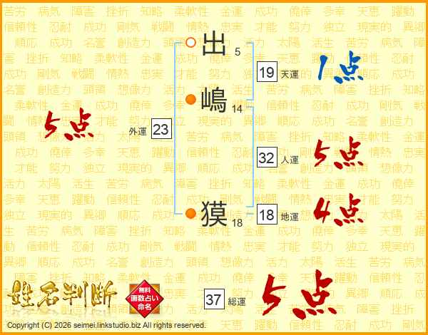出嶋獏さんの総運は37画の5点!