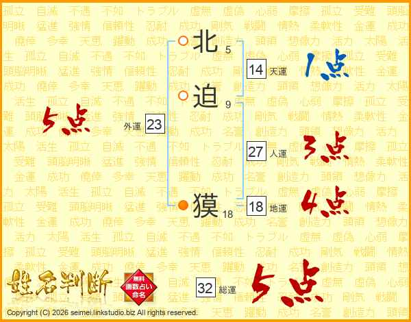 北迫獏さんの総運は32画の5点!