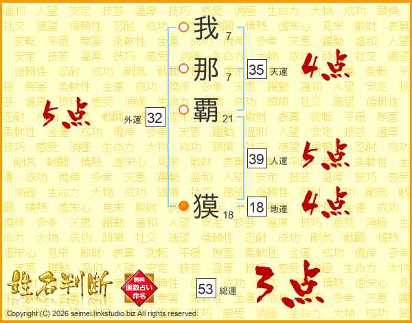 我那覇獏さんの総運は53画の3点!