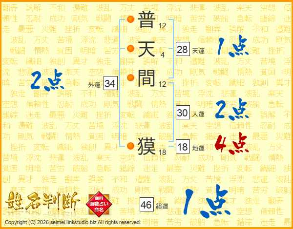 普天間獏さんの総運は46画の1点!