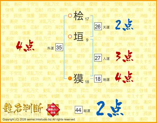 桧垣獏さんの総運は44画の2点!