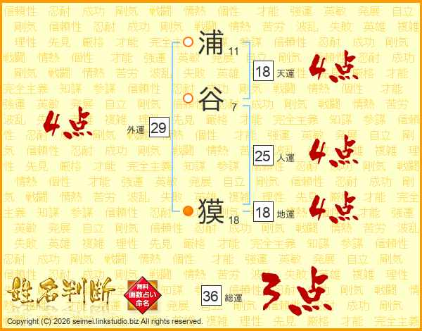 浦谷獏さんの天運は18画の4点!