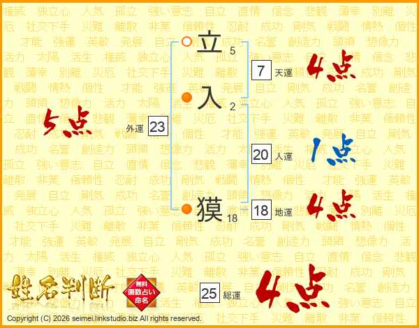 立入獏さんの総運は25画の4点!
