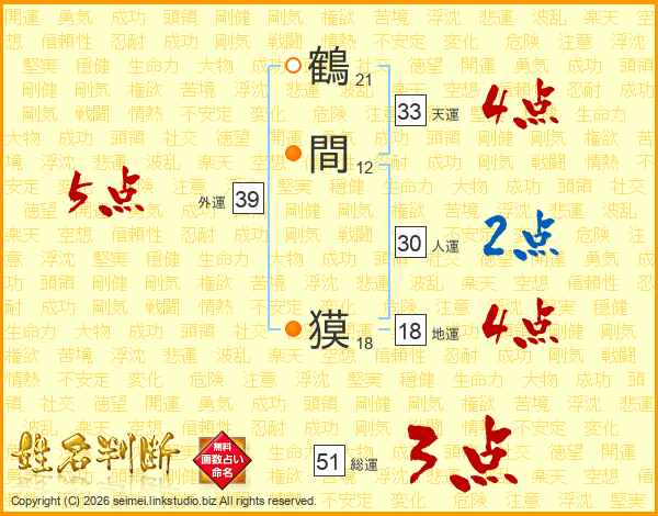 鶴間獏さんの総運は51画の3点!
