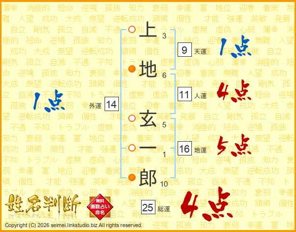 上地玄一郎さんの総運は25画の4点!