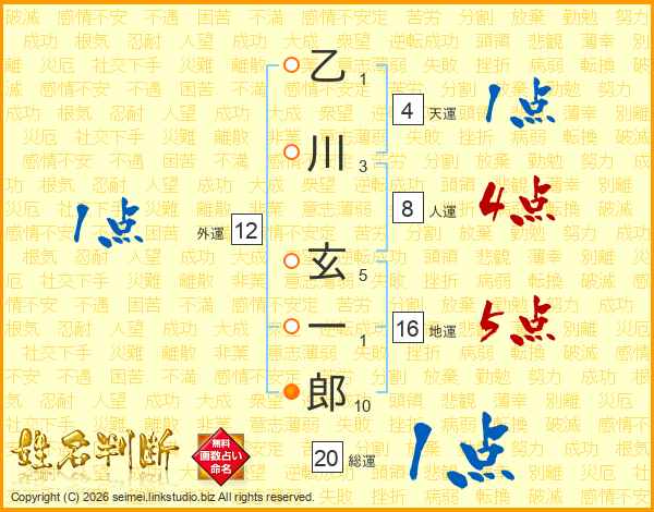 乙川玄一郎さんの総運は20画の1点!