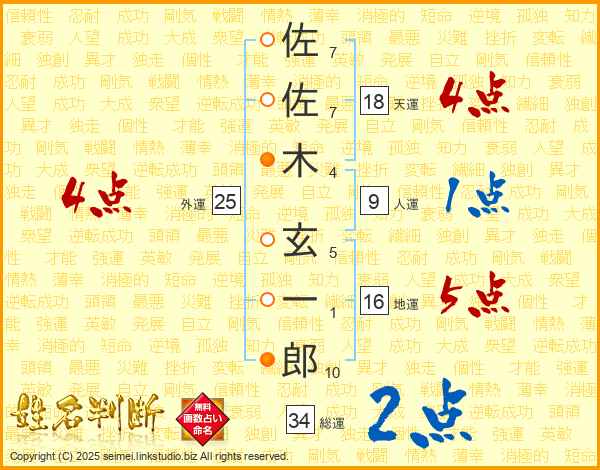 佐佐木玄一郎さんの総運は34画の2点!