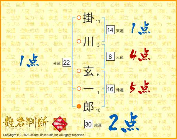 掛川玄一郎さんの総運は30画の2点!