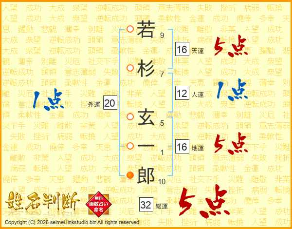 若杉玄一郎さんの総運は32画の5点!