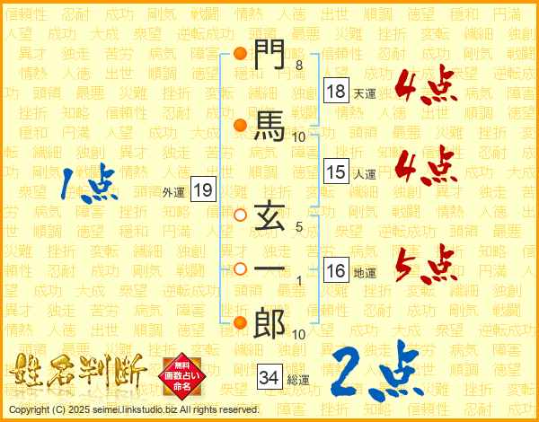 門馬玄一郎さんの総運は34画の2点!