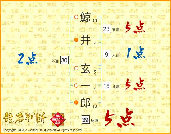 鯨(19画)井(4画) 玄(5画)一(1画)郎(10画)