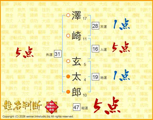 澤崎玄太郎さんの総運は47画の5点!