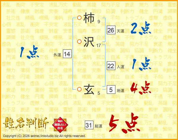柿(9画)沢(17画) 玄(5画)