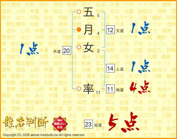 五月女率さんの総運は23画の5点!