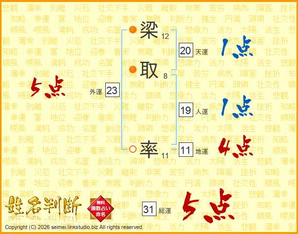梁取率さんの天運は20画の1点!