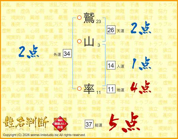 鷲山率さんの総運は37画の5点!