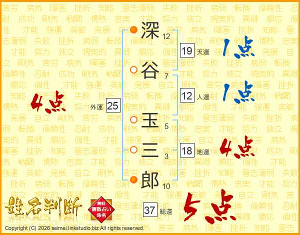 深谷玉三郎さんの総運は37画の5点!