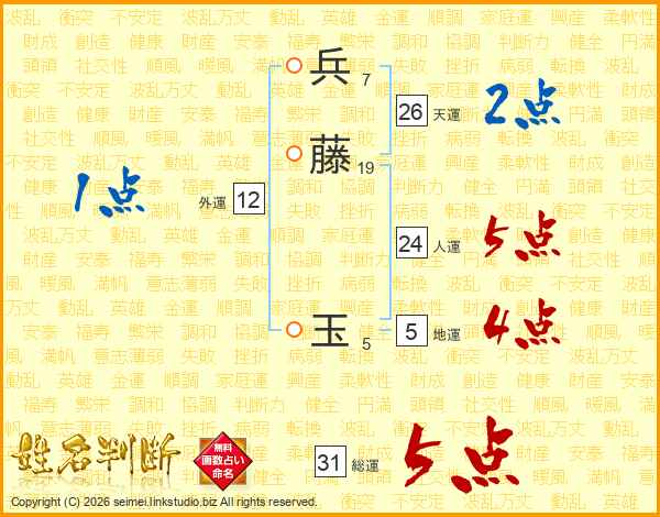 兵藤玉さんの総運は31画の5点!