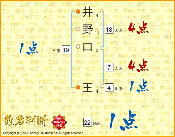 井野口王さんの総運は22画の1点!