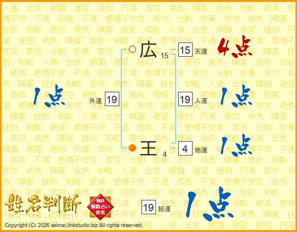 広王さんの総運は19画の1点!