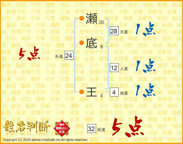 瀬底王さんの総運は32画の5点!