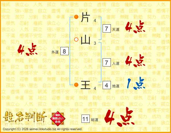 片山王さんの総運は11画の4点!