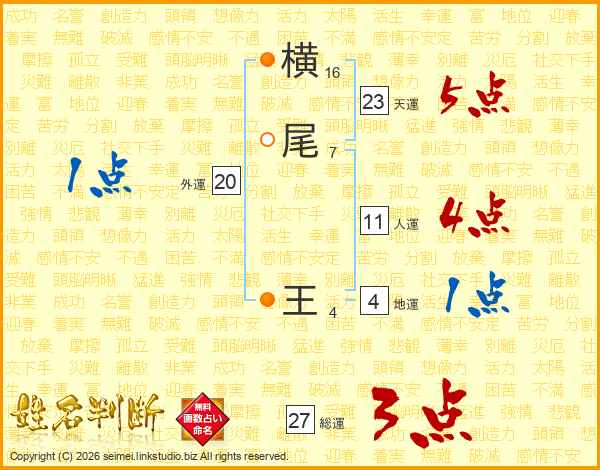 横尾王さんの総運は27画の3点!