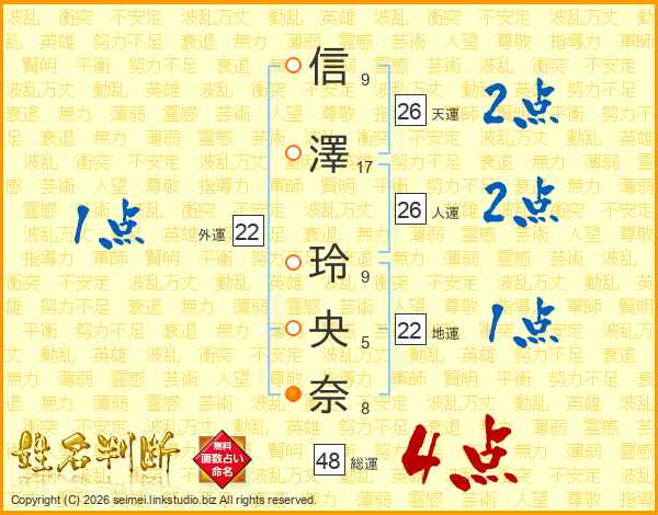 信澤玲央奈さんの総運は48画の4点!