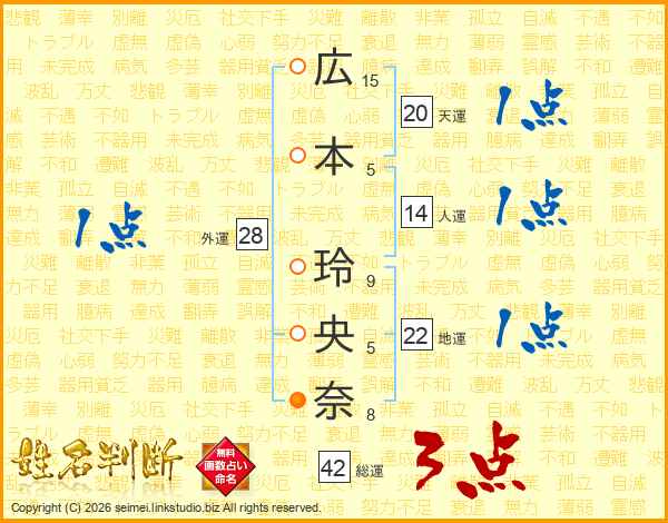 広本玲央奈さんの総運は42画の3点!