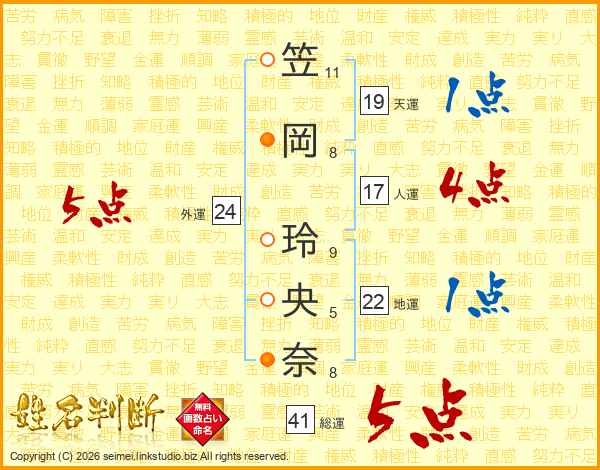 笠岡玲央奈さんの外運は24画の5点!