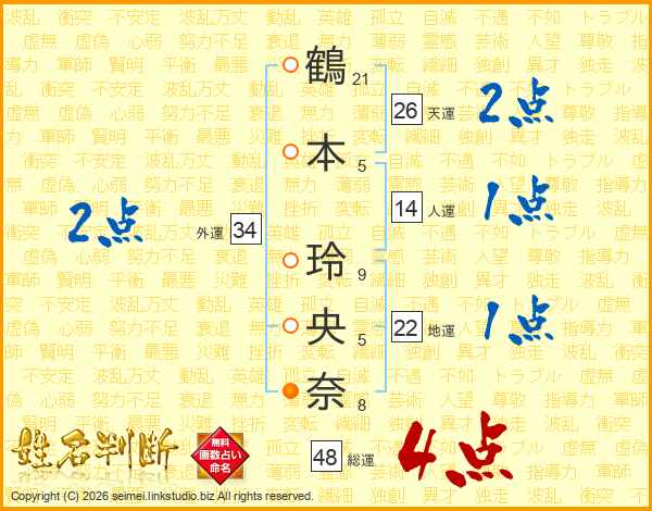 鶴本玲央奈さんの総運は48画の4点!