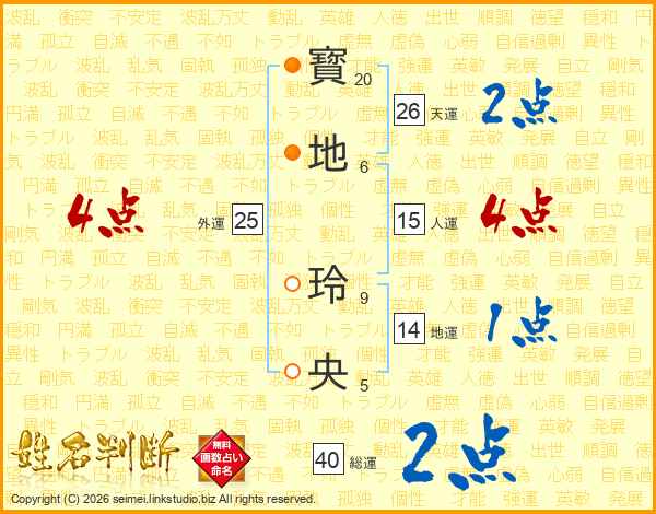 寳地玲央さんの天運は26画の2点!