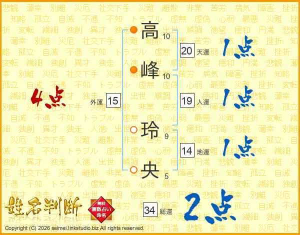 高峰玲央さんの総運は34画の2点!