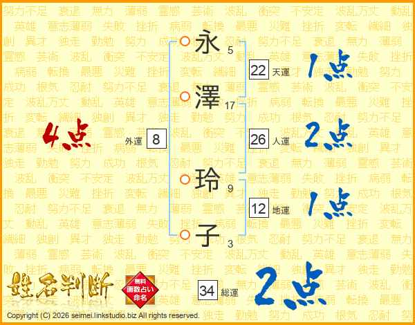 永澤玲子さんの総運は34画の2点!