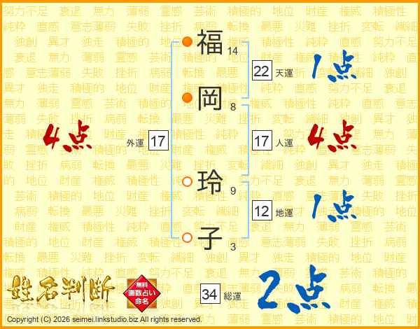 福岡玲子さんの外運は17画の4点!