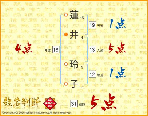 蓮井玲子さんの総運は31画の5点!