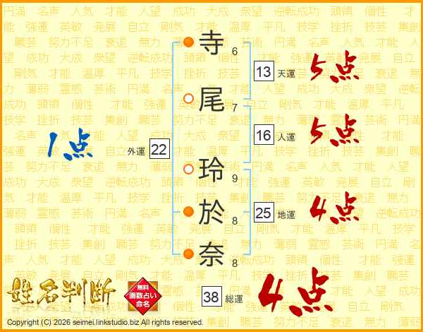 寺尾玲於奈さんの総運は38画の4点!