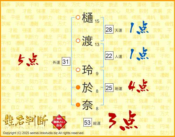 樋渡玲於奈さんの地運は25画の4点!