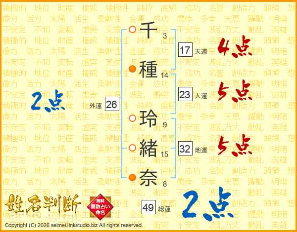千種玲緒奈さんの外運は26画の2点!