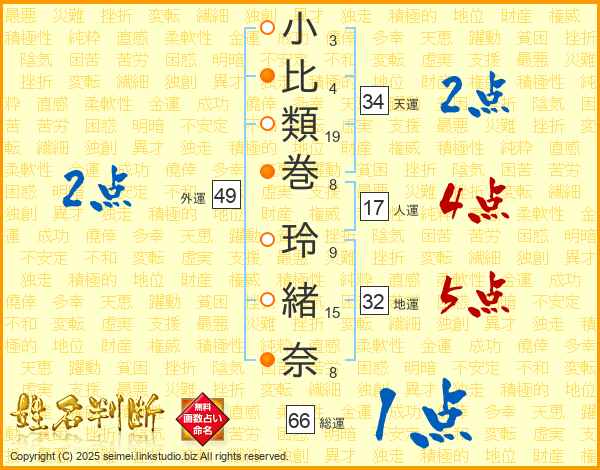 小比類巻玲緒奈さんの総運は66画の1点!